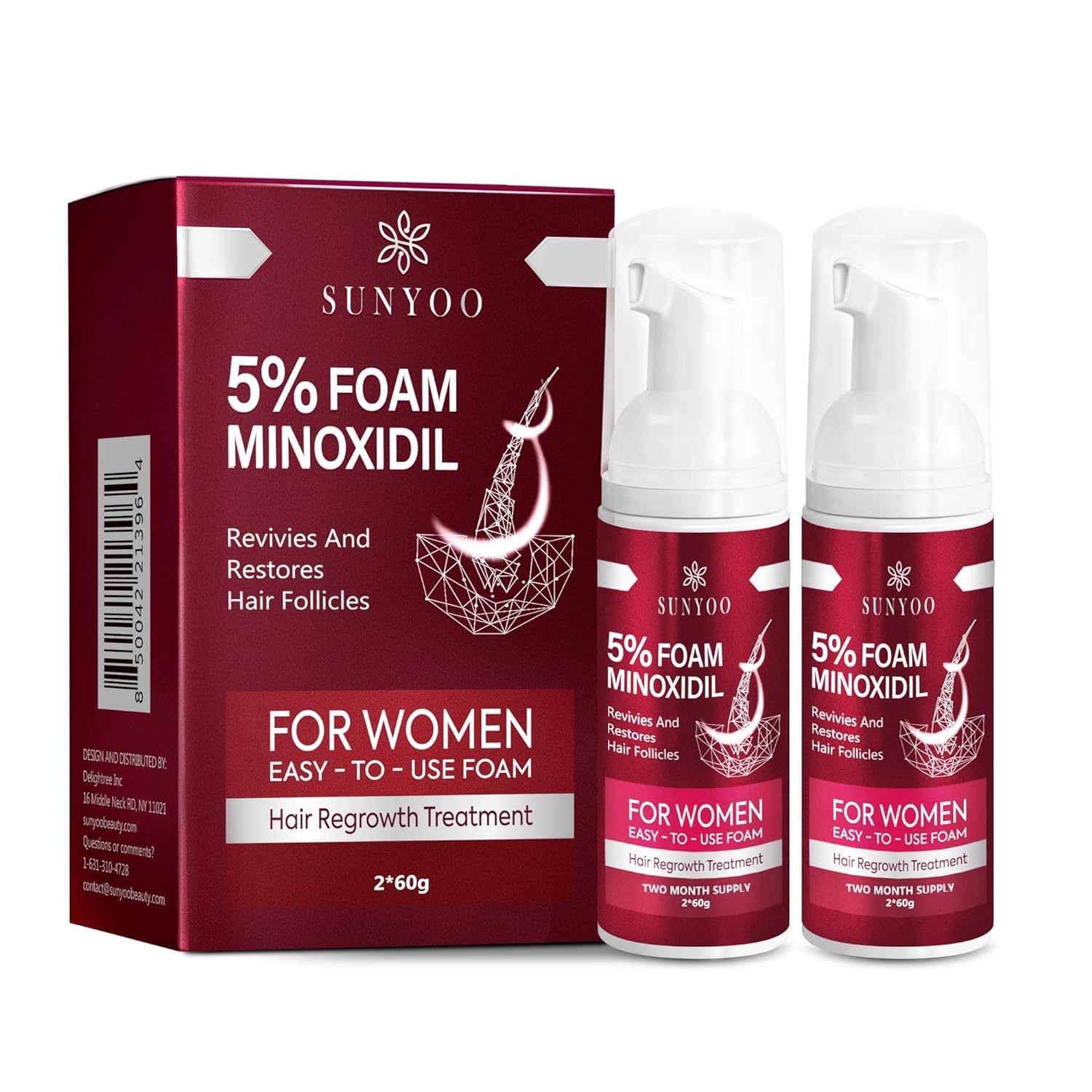 5% Minoxidil Foam for Women: Hair Loss Treatment for Hair Thinning to Get Thicker Fuller Hair, 2 pack of 60ml