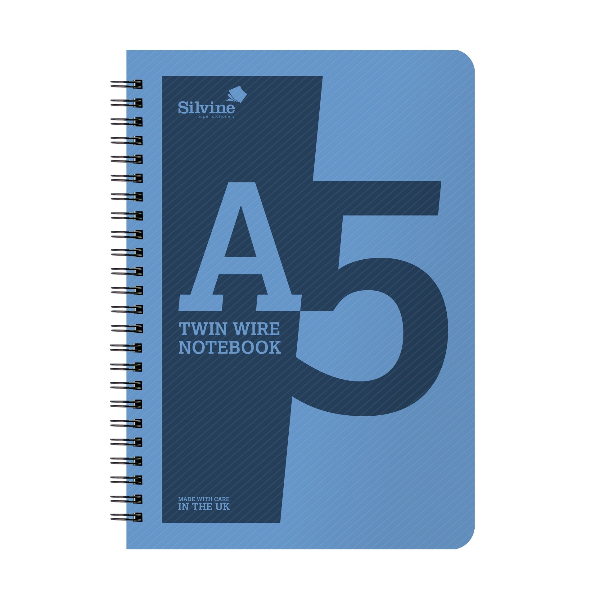 A5 Twin Wirebound Blue Plastic Front Notebook 160 Pages. Ruled 8mm Feint, 160 Pages. Size: A5 (210x148mm).