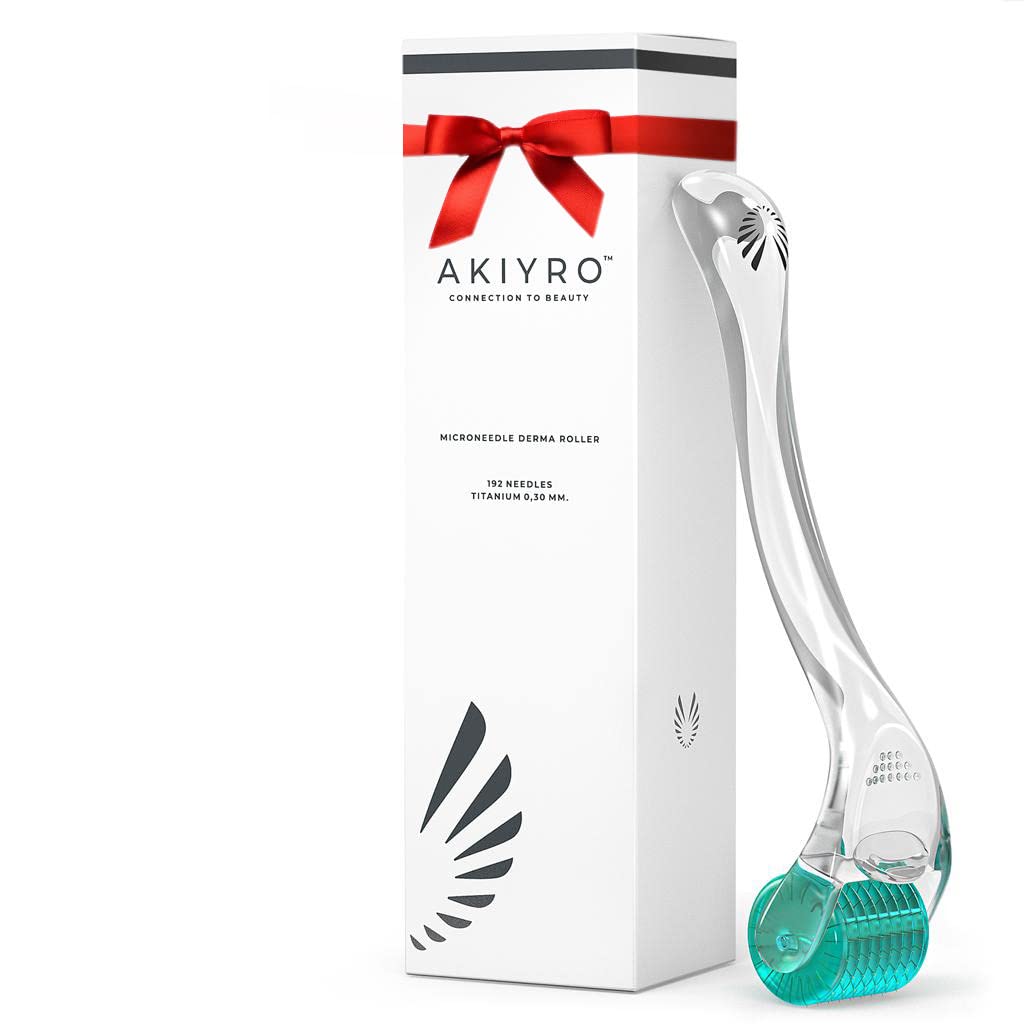 AKIYRO Derma Roller Titanium - 0.30mm Microderm Roller - Microneedle Roller with Case-Personal Use Microneedling Roller -192 Micro Needle Dermal Roller - At Home Microdermabrasion Face Roller (Green)