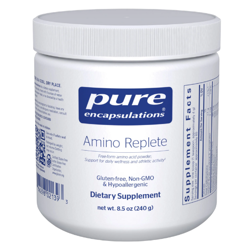 Amino Replete is a great-tasting powder formula that supports athletic activity, cognitive health, immune function and daily wellness. It offers a comprehensive blend of free-form amino acids, provided in the ratios found naturally in high biological value protein sources.