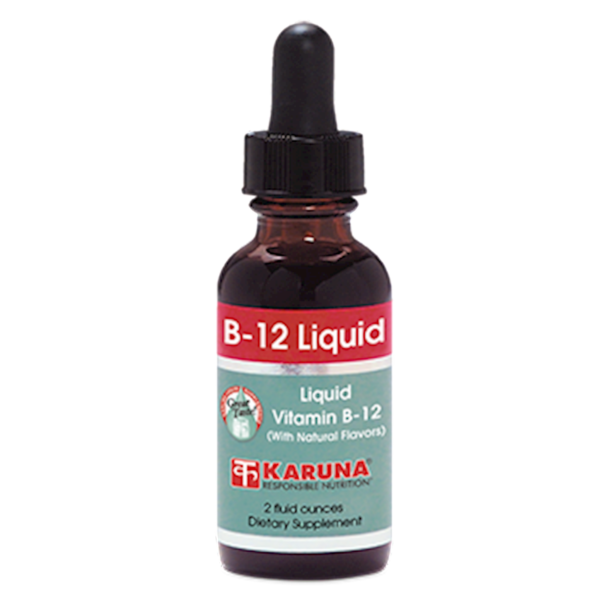 Vitamin B12 is an essential nutrient, but one that is eventually depleted if dietary sources are inadequate or absorption mechanisms are compromised. B12 deficiency is especially common in the elderly, vegetarians, and as the result of a variety of malabsorption syndromes, including those caused by the use of acid-blocking medications. Oral B12 therapy is as effective as injections as long as sufficient amounts are taken. Karuna's B-12 Liquid is a high-potency formulation using methylcobalamin, preferred by many over cyanocobalamin.