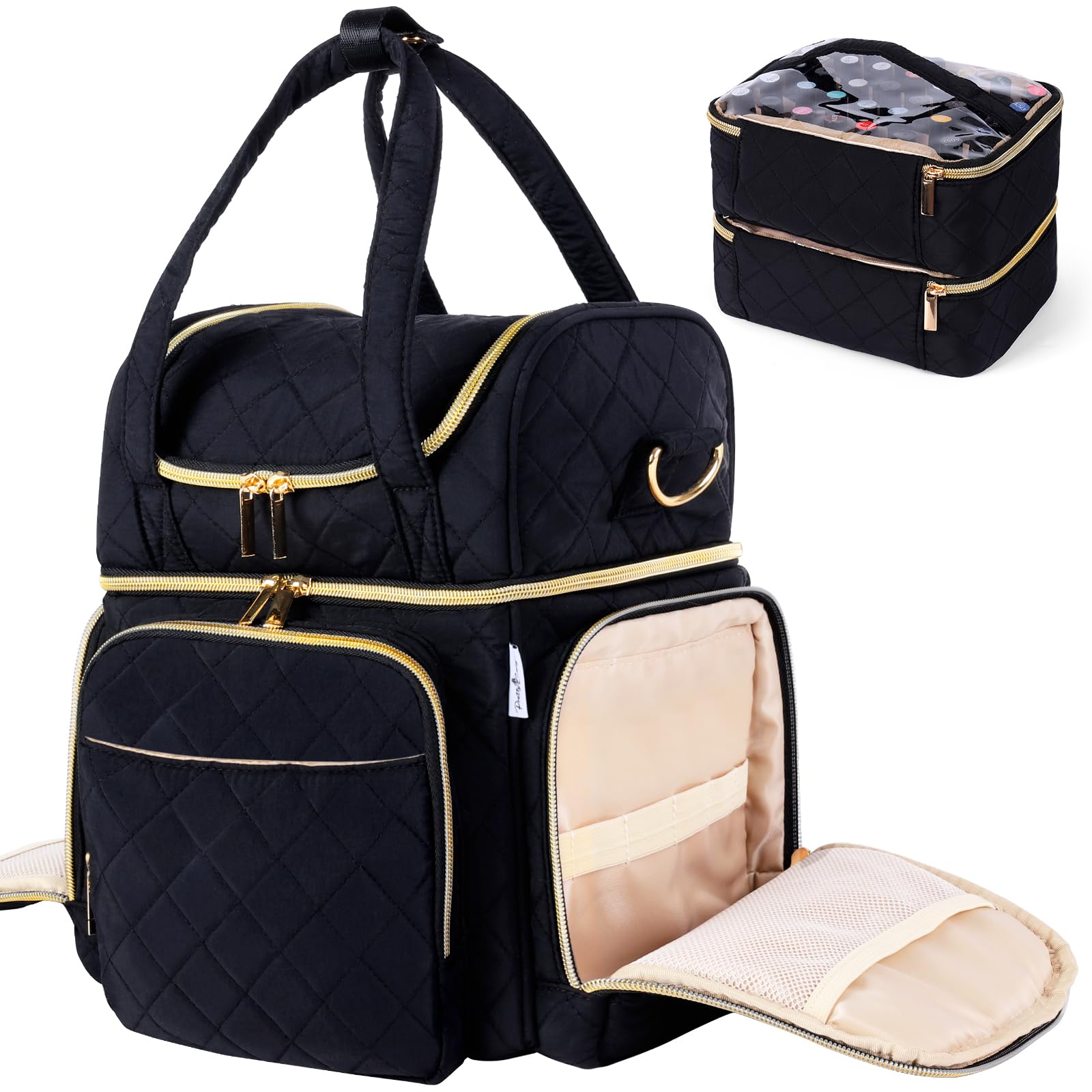 Pretty Comy Nail Polish Organizer Holds 70 Bottles and A Nail Lamp, Nail Bag with 2 Removable Bags and Tools Organizer Sections, Nail Tech Organizers and Storage, Nail Polish Organizer Case
