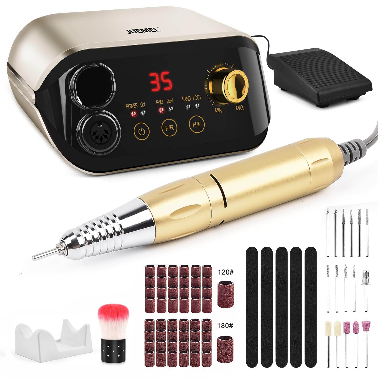 Professional Nail Drill Machine 35000 RPM with Foot Pedal and Forward/Reverse Rotation,JUEMEL Electric Nail File for Gel Nails,Acrylic,Manicure Pedicure Polishing Remover Tool kit